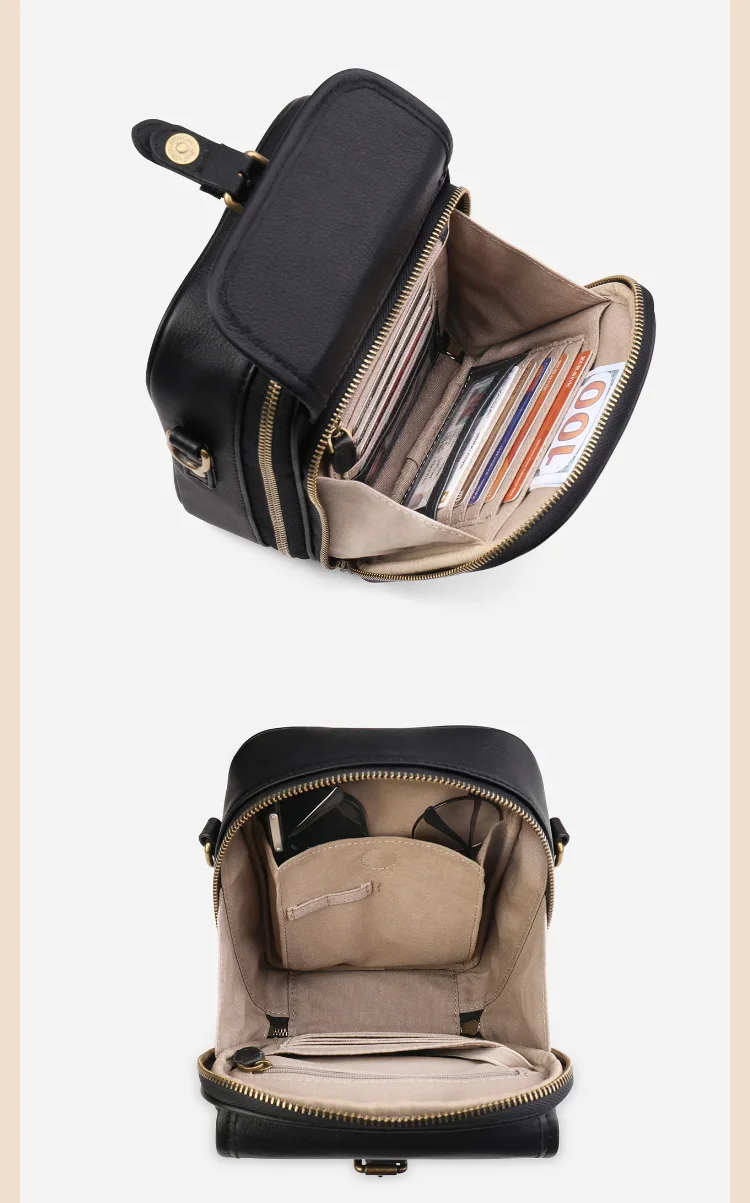 Ne craignez plus les pickpockets ! Ce sac en cuir véritable intègre une protection RFID et descompartiments sécurisés pour vos cartes et vos biens précieux. 🛡️💳
